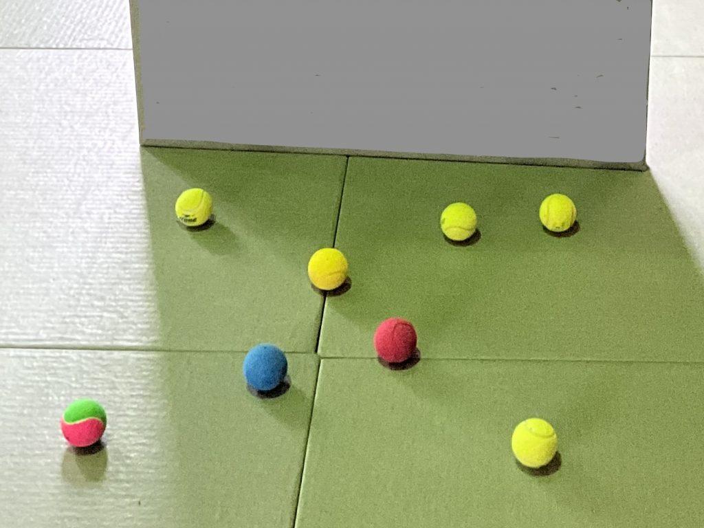 | Bewegung | Partner bewegt die Matte horizontal auf den Tennisbällen in verschiedene Richtungen. Aikidoka hält die Balance. |